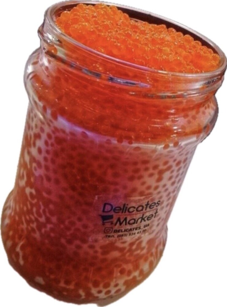 Зерна розсипчасті та легко відокремлюються один від одного. Смак: делікатний – характерний для ікри форелі, приємний та ніжний. Розмір зерна: близько 2-3 мм. Сіль: 3,2%.; Кошерна ікра – підтверджено знаком. Температура зберігання: від 0°С до + 4°С. Енергетична та харчова цінність на 100г форелевої ікри: •білок: 21,5 г; •жири: 3,52 г; •вуглеводи: 0 г; •вітаміни: А — 20 мг; В1 — 0,132 мг; В2 — 0,115 мг; РР — 2,5 мг; З — 2,9 мг; Країна -Фінляндія Фасування - 0.5кг 2100₴ 1 шт.