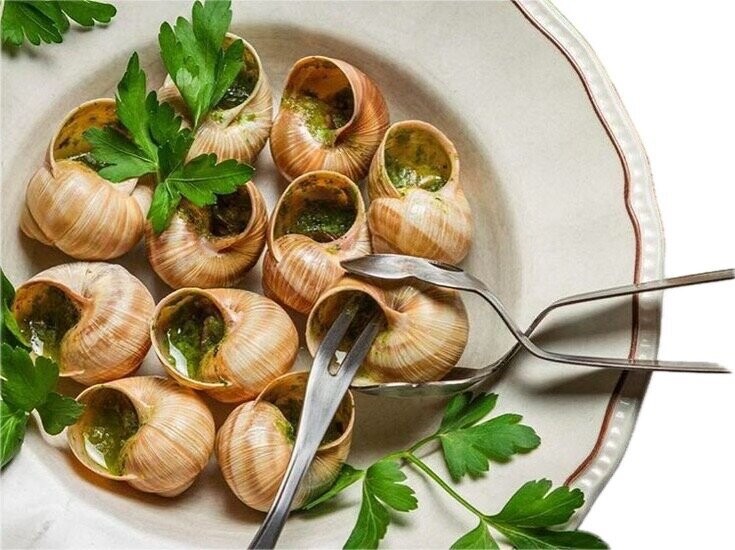 Равлики виноградні в соусі "по-бургундські" заморожені - тренд року, один з кращих делікатесів. Напівфабрикат. Склад: мушля равлика, м’ясо равлика (50%), спеціальний соус 50%: (масло вершкове (38%), петрушка, селера, часник свіжий, сіль поварена харчова, прянощі).