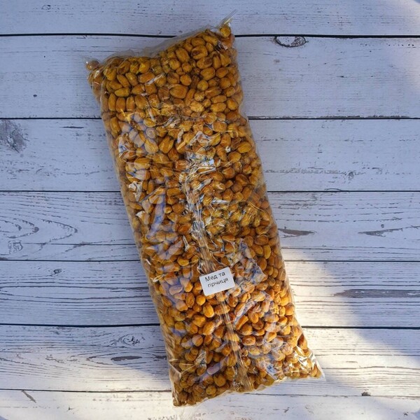 Ароматні зерна медово-гірчичного смаку кукурудзи ідеально поєднуються з різними сортами світлого і темного пива. Така закуска відмінно замінить звичний попкорн при перегляді фільму. Кукурудза "мед і гірчиця" відмінно урізноманітнює смакові уподобання. 1₴ 100 г.