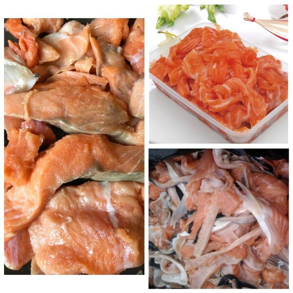 Ніжну та жирну м’якоть зрізають тонкими смужками поруч з хребтом і заготовляють обрізи. Такі шматочки відрізняються соковитістю та жировими прошарками. Часто засолюють і коптять – виходить самостійна та поживна закуска. Завдяки яскравому рожевому або помаранчевому кольору використовують для прикраси готових страв.