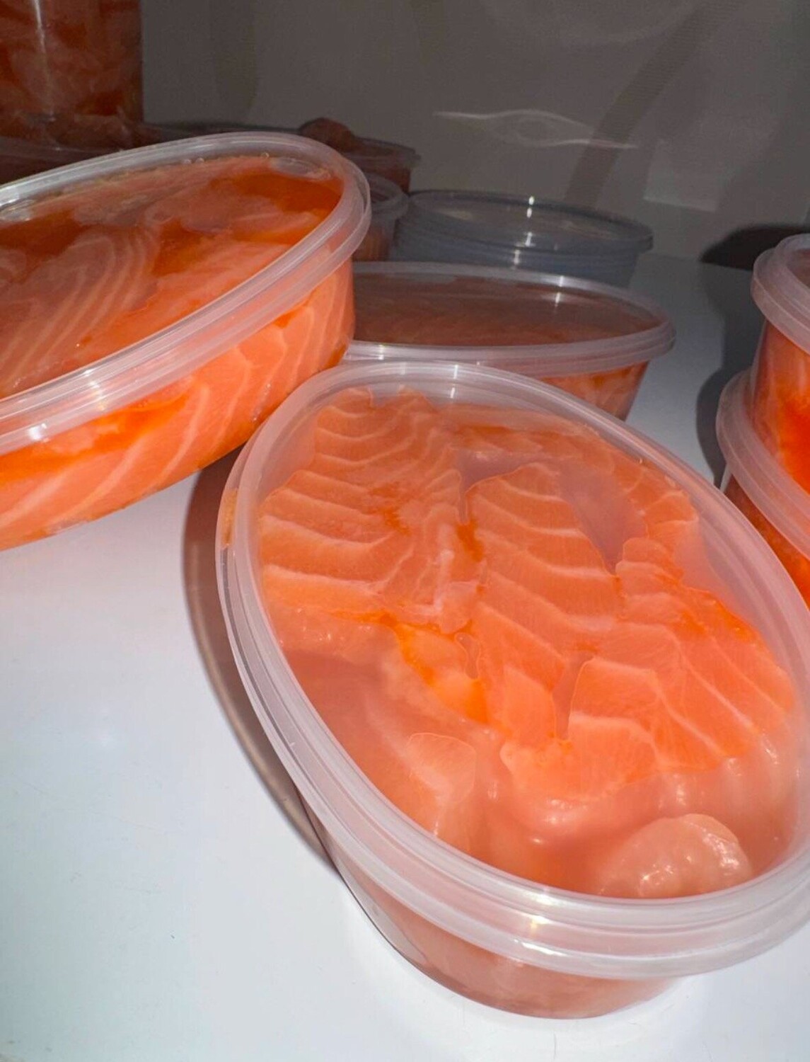 Шматки сьомги слабо солені 0,5 Зроблені з охолодженої сировини, дуже смачній! ✅Фасування 0,5кг пластиковий контейнер